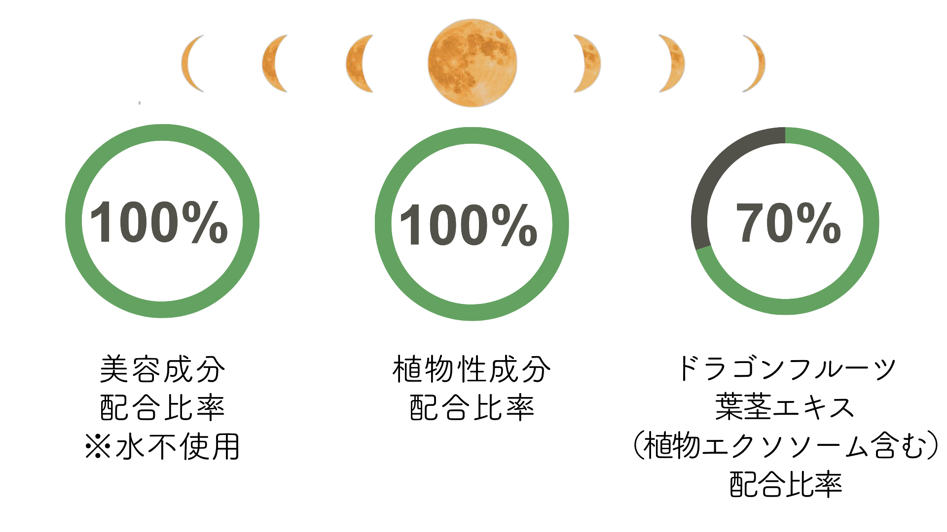 最新の美容医療でも注目されている植物由来のエクソソームを含む、美容成分のドラゴンリーフ細胞液をほぼ”原液”のまま70%配合。